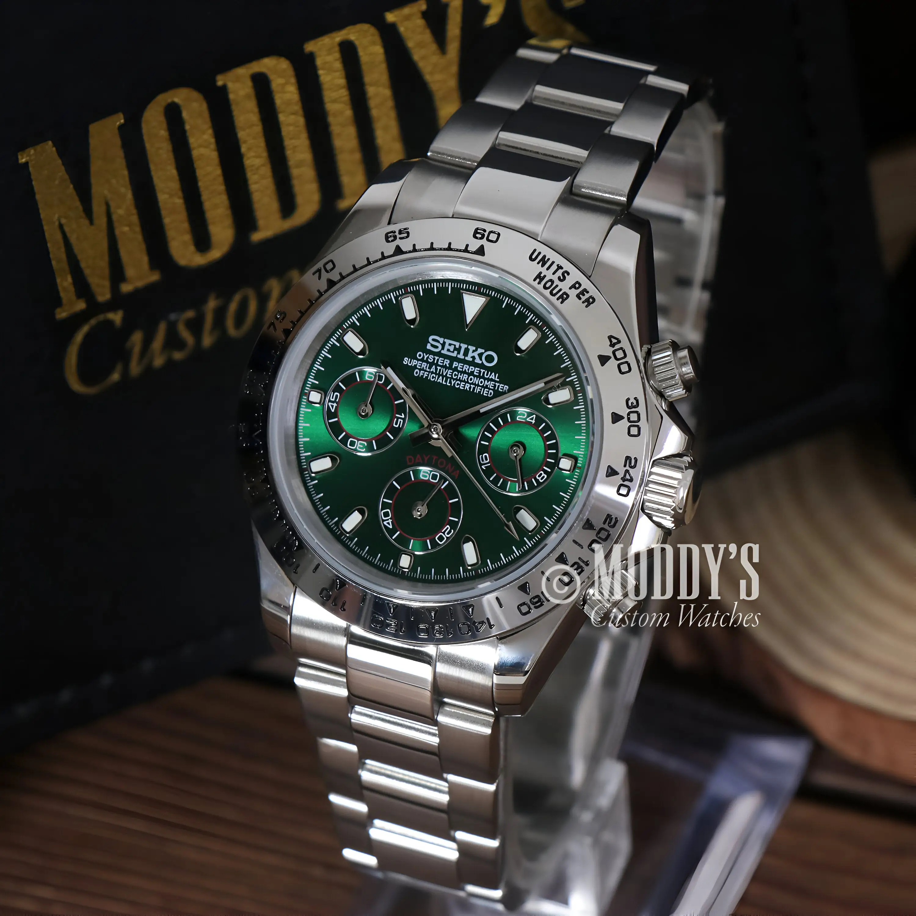 Inspired by the iconic Daytona design, and featuring the prestigious Seiko VK63 hybrid movement, we present the Seiko Mod Daytona. A 40 mm high-end quality watch combining the perfect alliance between excellence and accessibility.